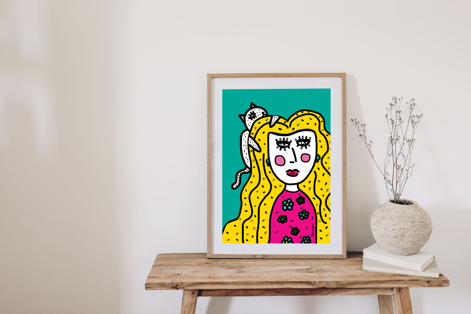 Apportez une touche d’originalité et de douceur à votre intérieur avec ce poster pop art plein de tendresse imaginé par l'artiste Clemyart. Il met en scène la complicité unique entre un chat et son humaine, dans un style graphique moderne inspiré du pop art.